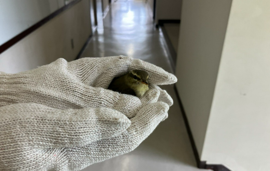 小鳥も私たちも疲れてきて、最後は軍手でそっとつかんで捕獲し、