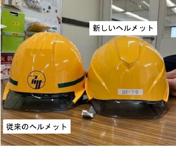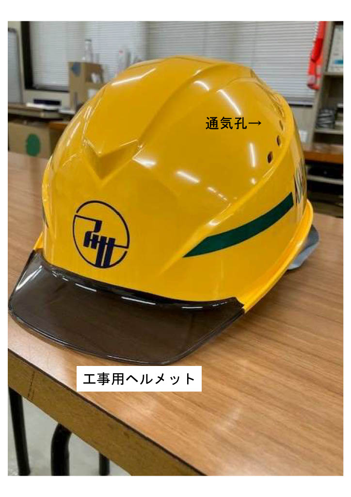 工事部のヘルメットは蒸れないように通気孔がついてます。